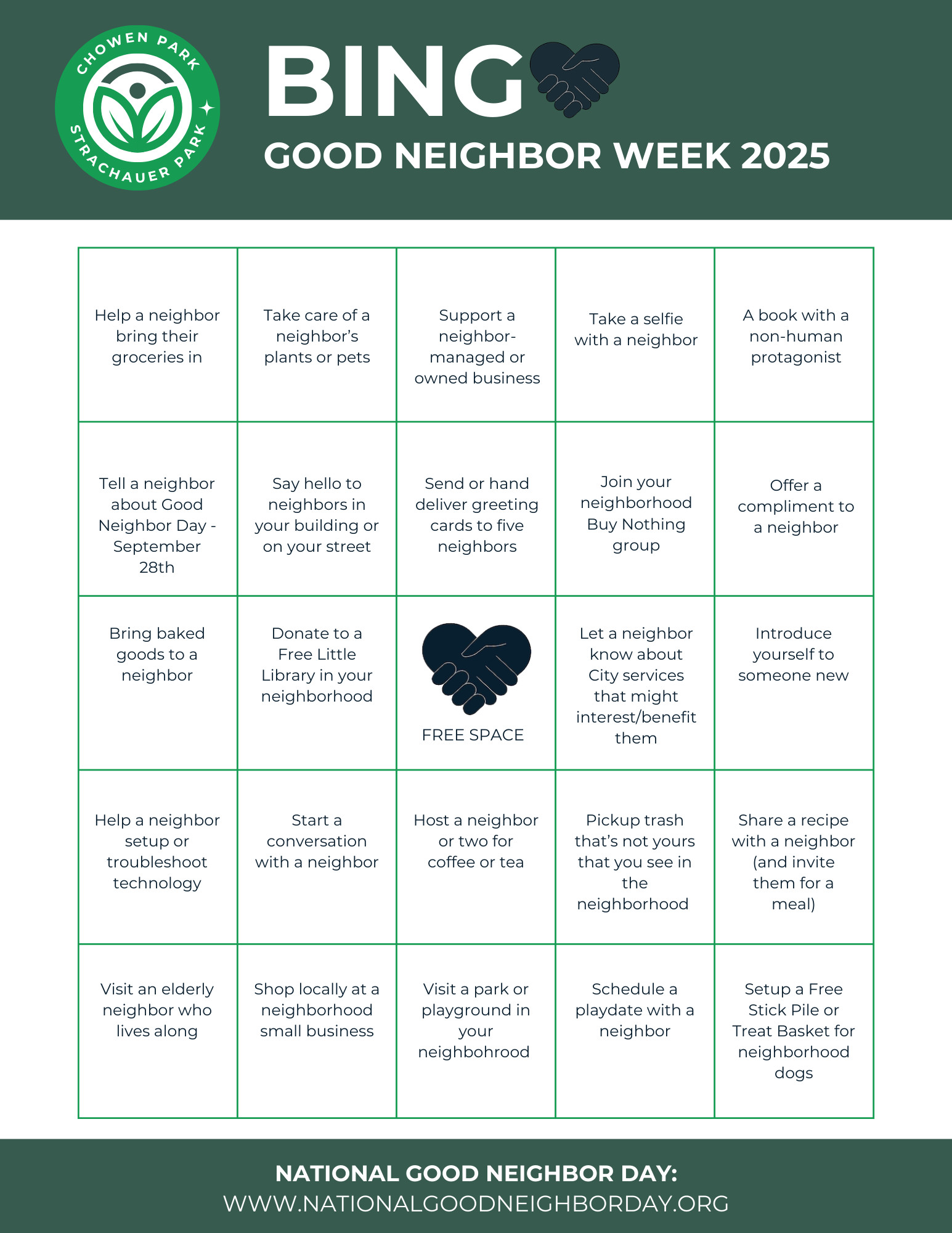 Our monthly email highlighting news, events, and items of interest for neighbors on or around the first of each month. We also aim to deliver a printed newsletter to homes once a year (usually in the summer).